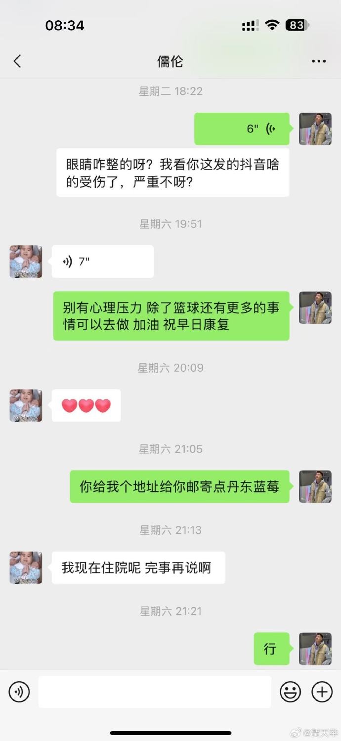 2月24日讯 今天,前辽篮球员贺天举更新社媒,回应了近日网络上对他的一些言论。