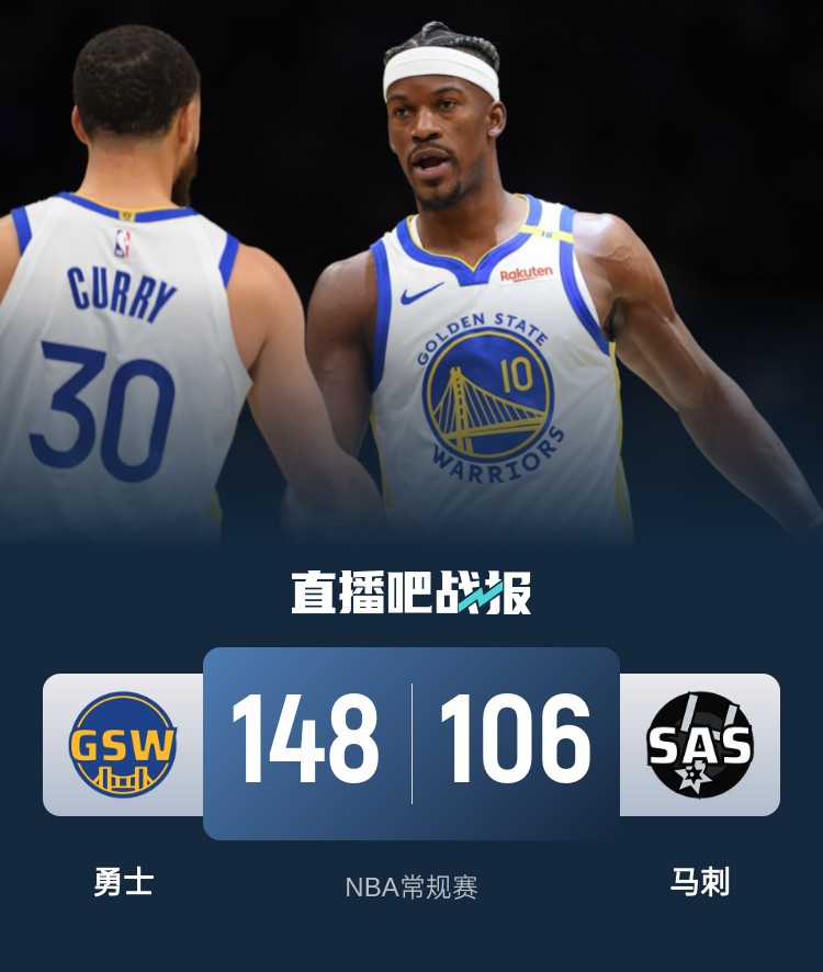 比赛上来,勇士就火力全开轰出19-6的开局取得领先,首节他们就拿下44分,次节双方的进攻表现都有所下滑,但勇士还是净胜7分,半场结束时马刺已经落后了24分;下半场回来,场上局势与首节极为相似,勇士单节再轰40+,马刺虽然进攻也有回暖拿到29分,但分差还是逼近四十分,比赛在末节早已失去悬念,最终勇士大胜马刺,送给后者四连败。